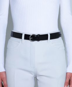 Aeyde Women’s Remi Leather Belt | Black & Silver Polido